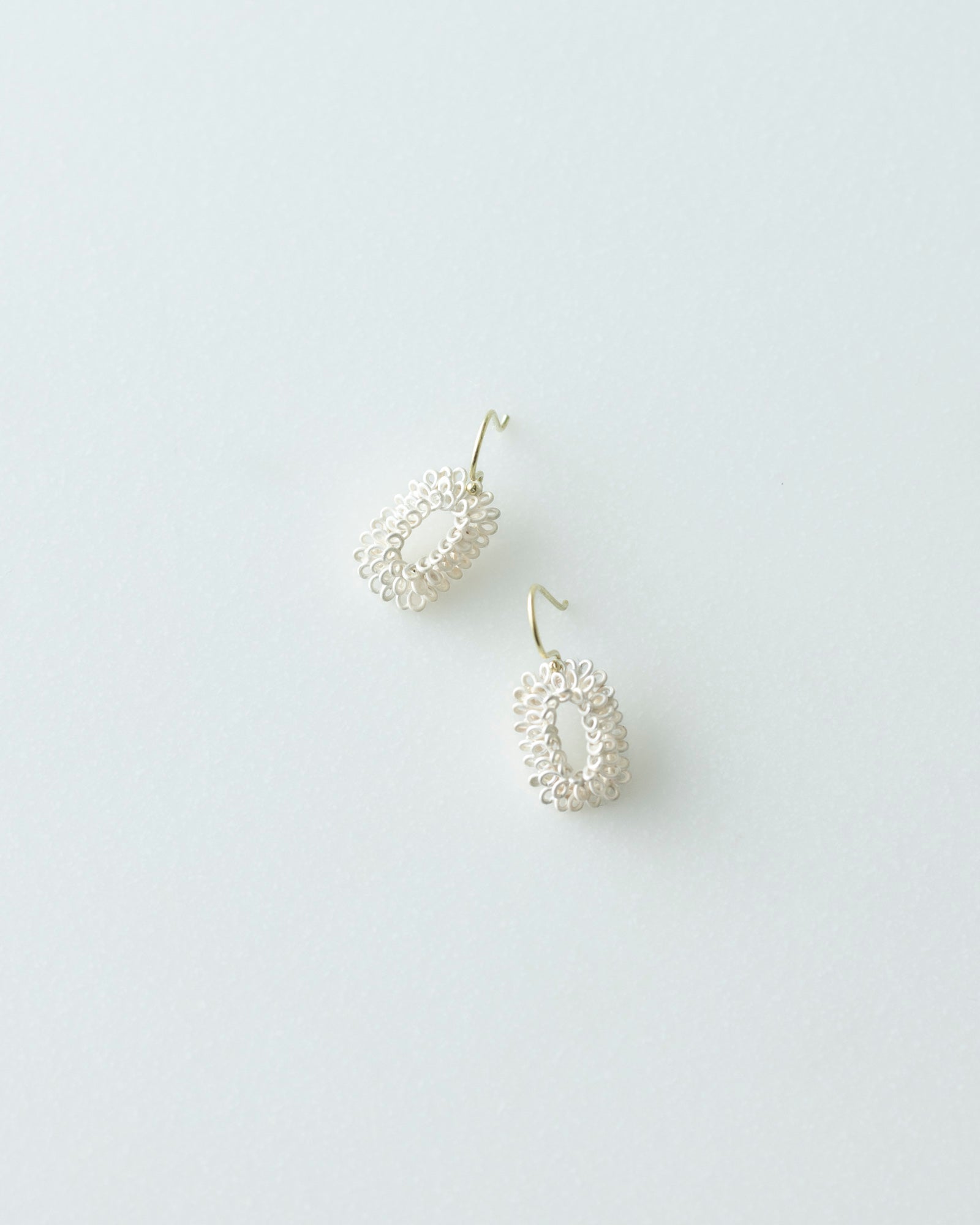 These stud earrings feature what the designer was drawn to, such as swirls, knots, and buds. The soft texture of the designs creates gentle shadows that move with the movement of the ear.