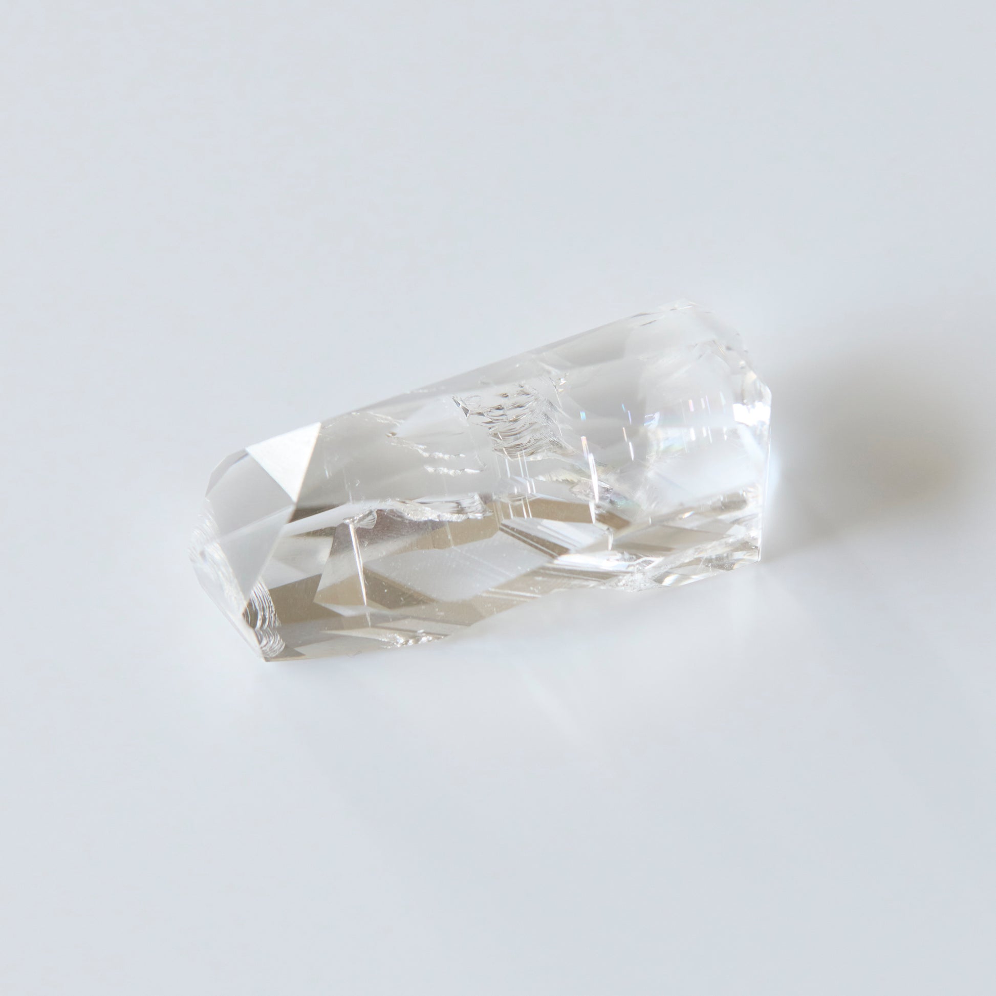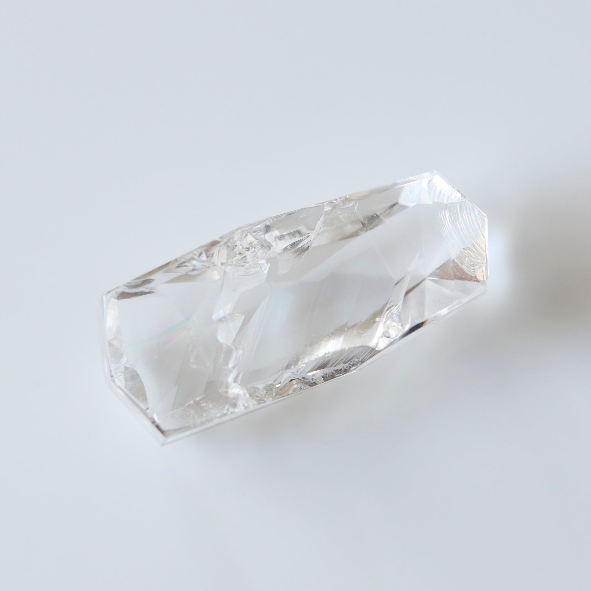 This quartz has tiny cracks inside the stone that refract light, allowing you to enjoy the seven-colored shine that seems to capture a rainbow depending on the angle.