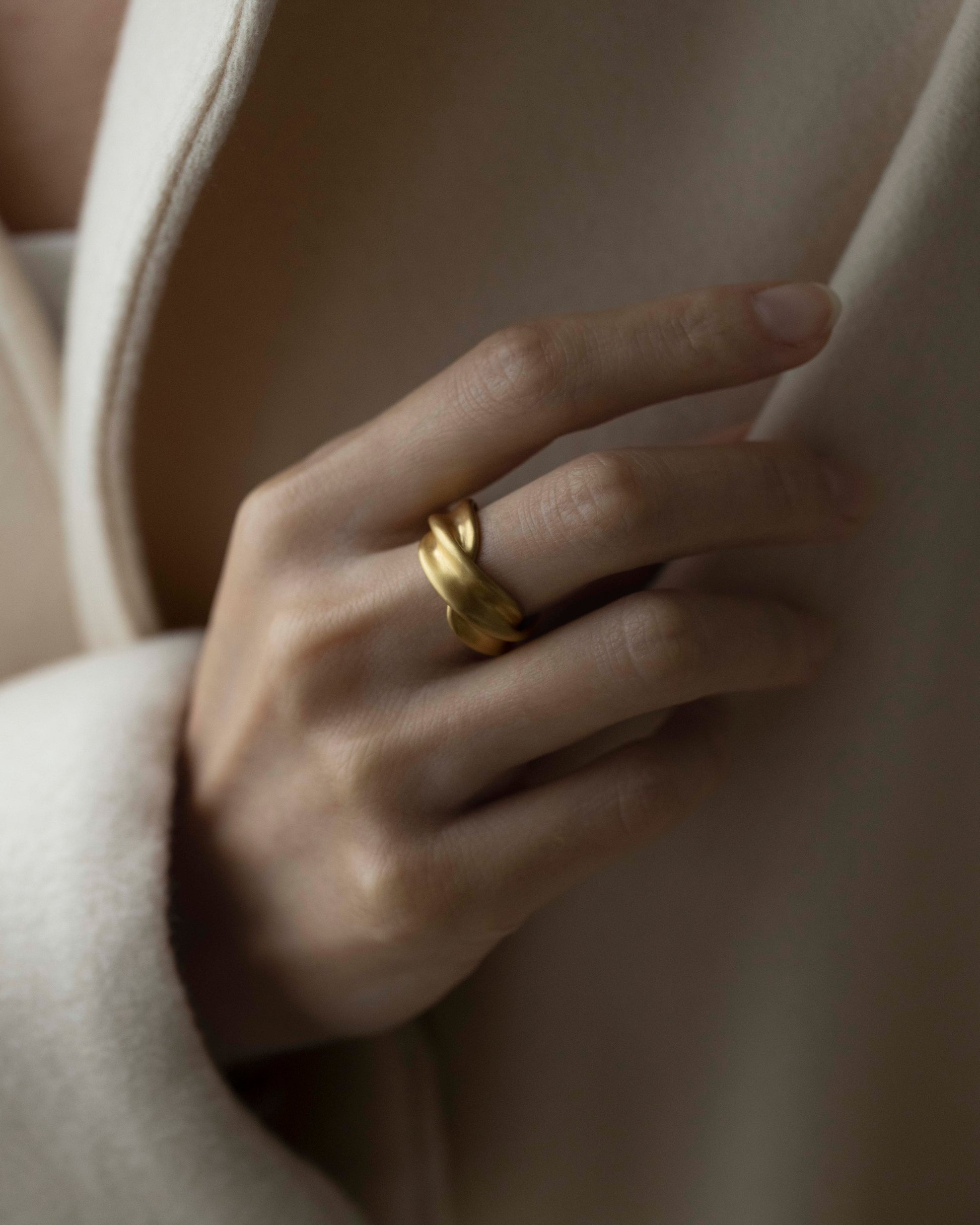 The soft texture adheres to the skin as soon as you apply it to your fingers, and changes to a gentle shade as you move. is depicted. The expression of each ring reflects the accumulation of daily actions and time, and it will eventually grow into a unique piece that is unique to its owner. The more you wear it, the more you will grow to love it.