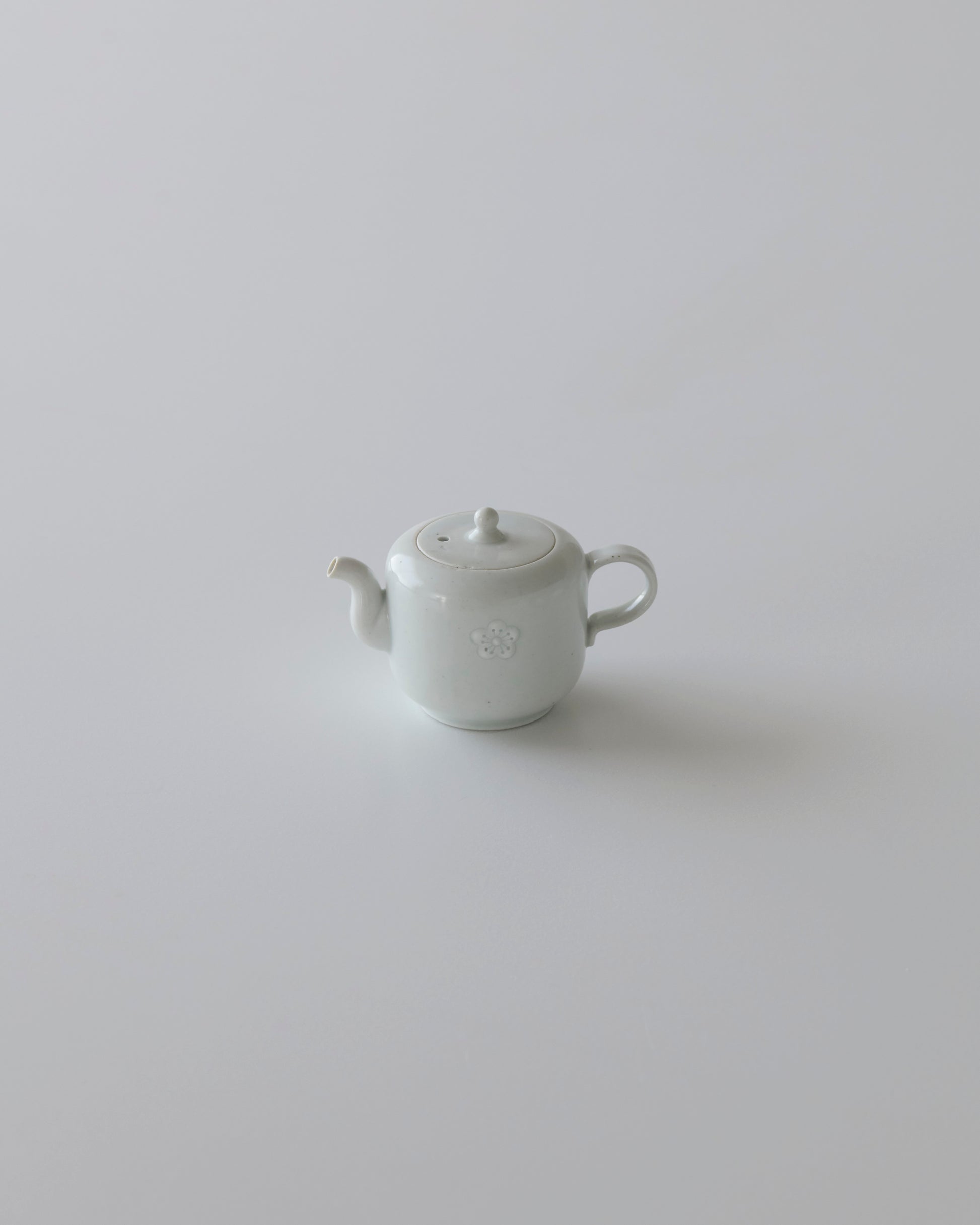 こちらは、白釉のやわらかな光沢の中に、スモモの花の穏やかなモチーフが浮かぶポットです。丸みを帯びたフォルムが手に心地よく、テーブルにそっと置くだけで春の気配を感じさせてくれます。