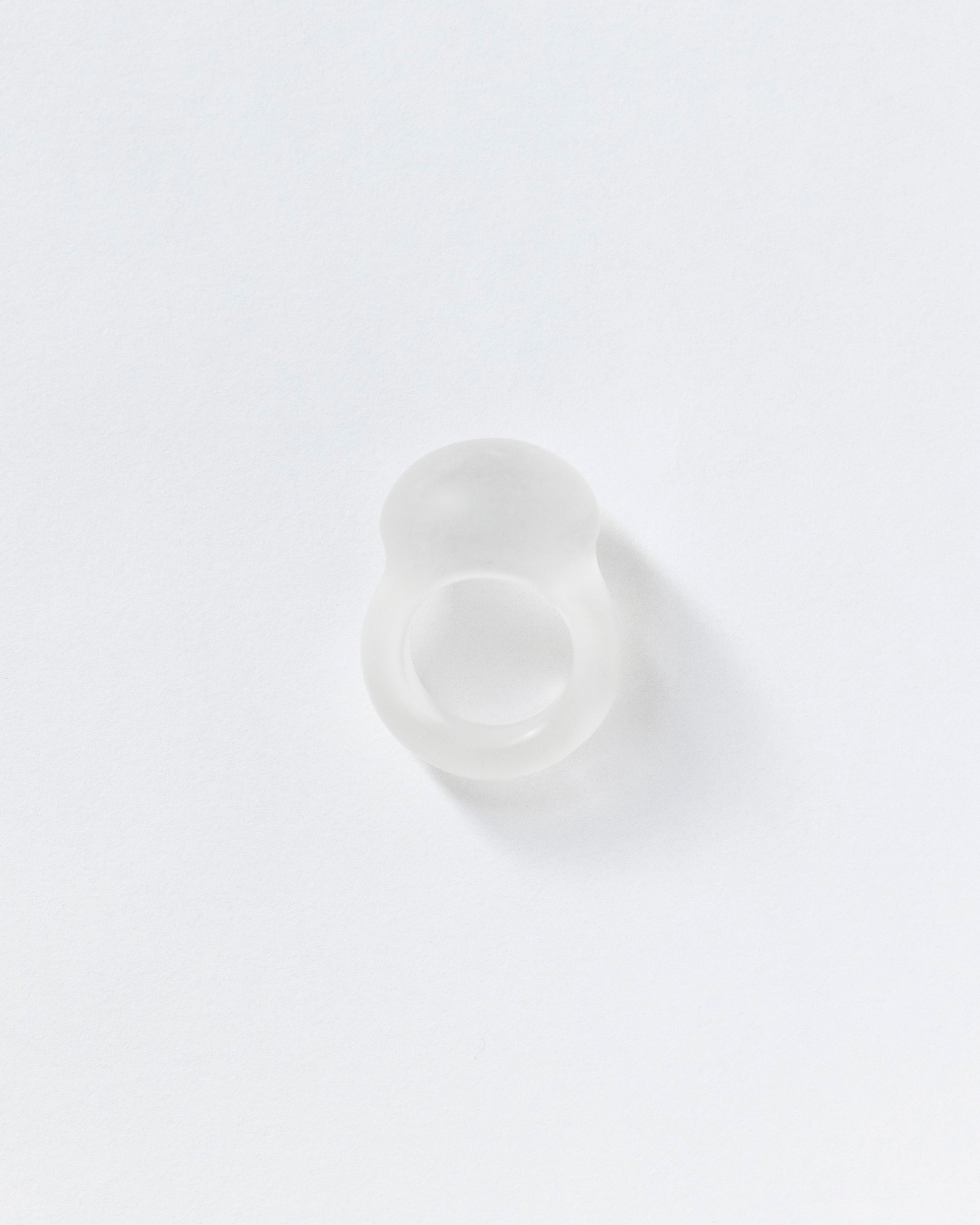 無色透明のロッククリスタルをドーム状に削り出したリング。結晶を「留める」のではなく、石そのものを削り出し、内部に光を通す構造体として立ち上げるJi won Song(ソン・ジオン)ならではのアプローチから生まれた一点です。